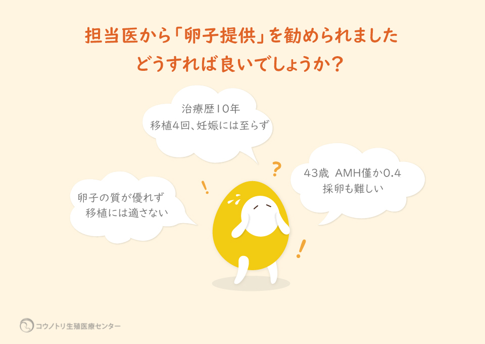 また、これまでに何度も体外受精を試みたにもかかわらず、自分の卵子では妊娠に至らなかった方が、医師の勧めにより卵子提供治療を検討されるケースも少なくありません。