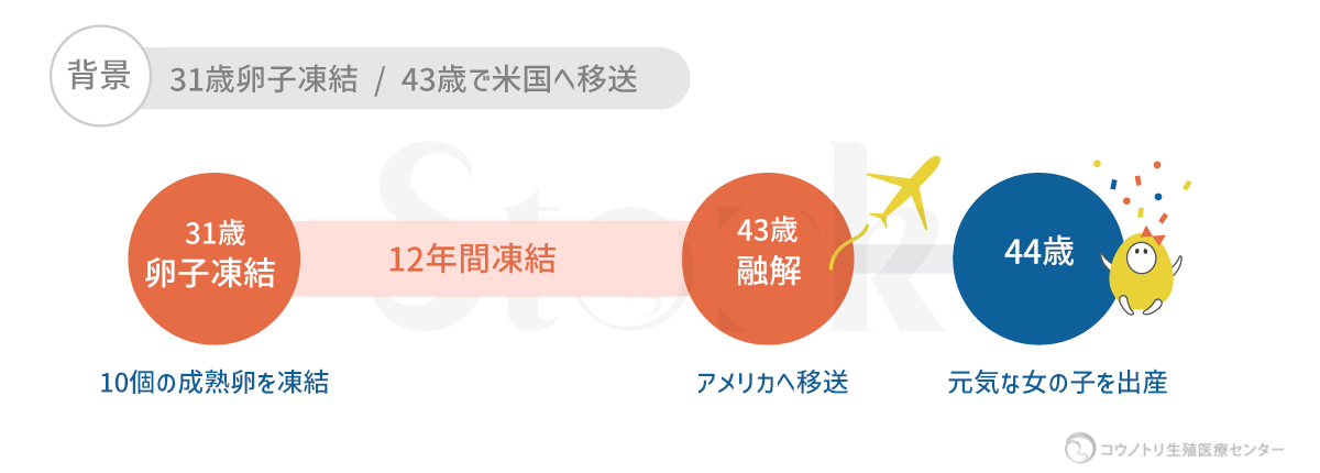 | 卵子凍結 | アメリカへ移送 | 出産 |